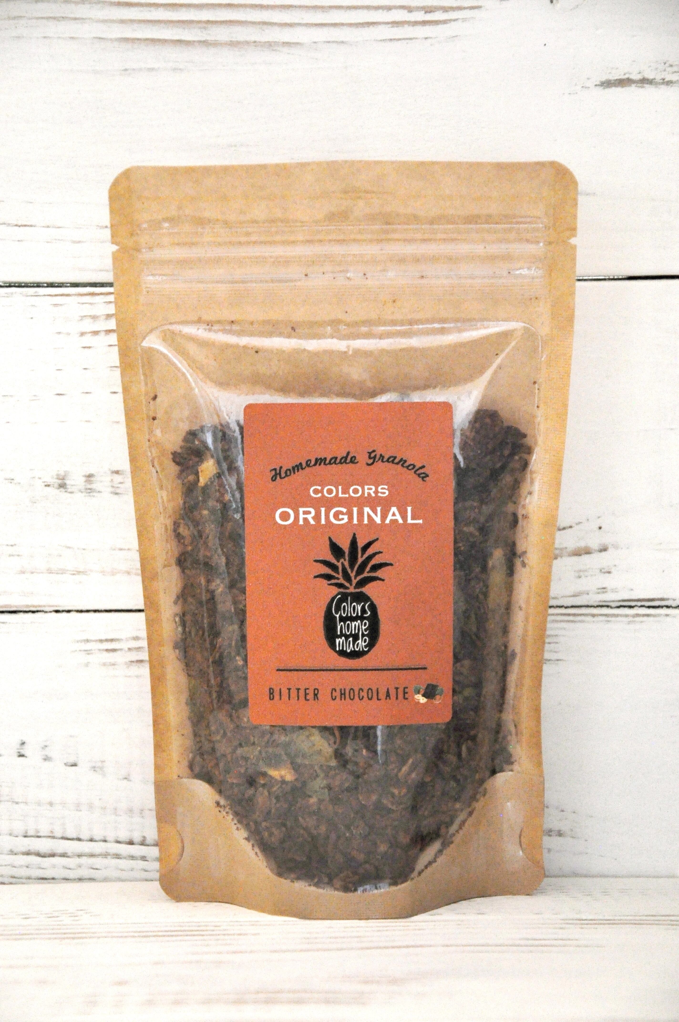 お子様のおやつにも大人気!そのまま食べたりバニラの上にのせて食べるのもおいしいですよ!自家製のドライキウイの酸味とビターチョコレートの相性の良い無添加グラノーラです。